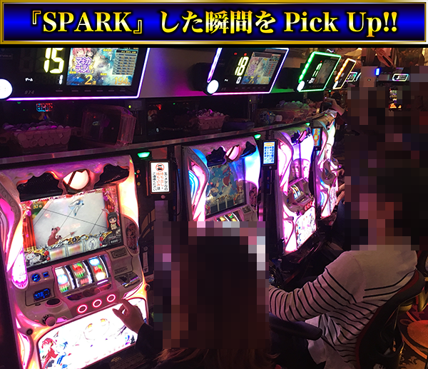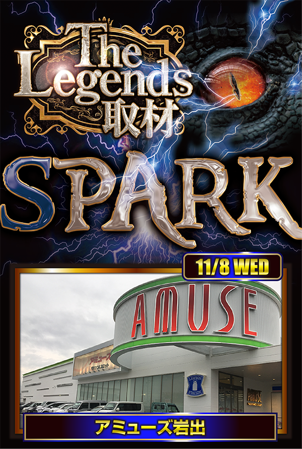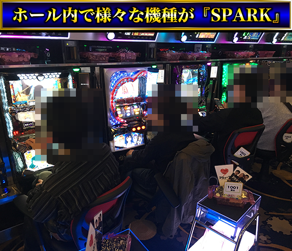 大勢のプレイヤーが遊技を楽しみ、あらゆる機種がフル稼働となっている状況で「The Legends取材-SPARK」を敢行した。