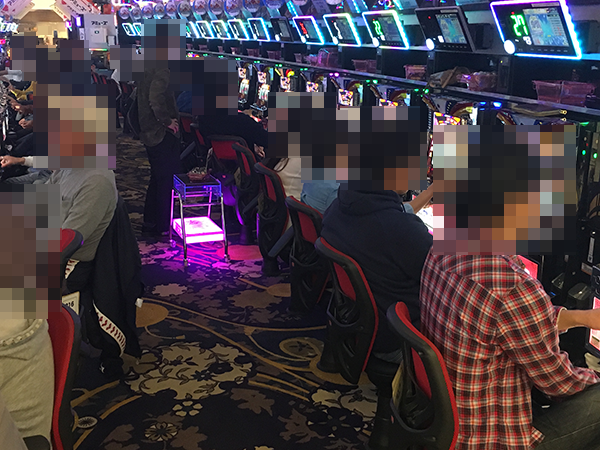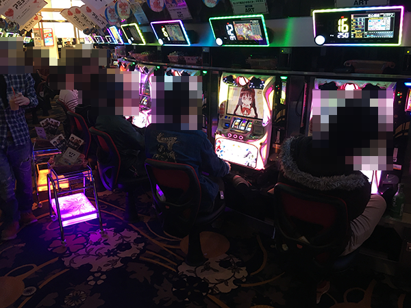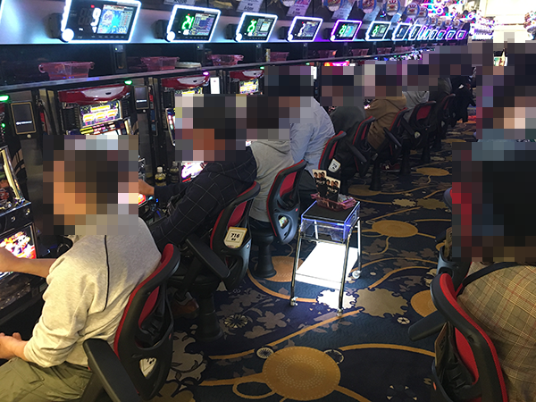 また、5種類のジャグラーシリーズはどれも大にぎわい。それぞれに良好な確率を示すデータカウンターがあり、「マイジャグラーⅢ」や「ファンキージャグラー」などで、プレイヤーたちも思う存分楽しんでいるように思えた。ドル箱を使用していないプレイヤーも粘る様子がうかがえたことからも、機種に魅力を感じていたのだろう。