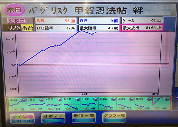 8000枚を超えてなお上昇を続ける「バジリスク~甲賀忍法帖~絆」!