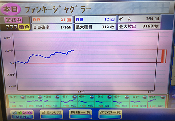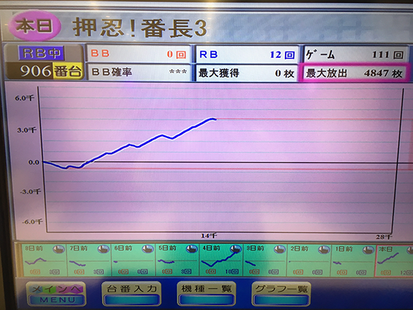 「押忍!番長3」にみられた美しい右肩上がりのグラフ。5000枚の大台へ!!