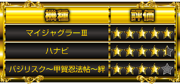 バジリスク~甲賀忍法帖~絆…3台中2台が持ち玉遊技。星4個