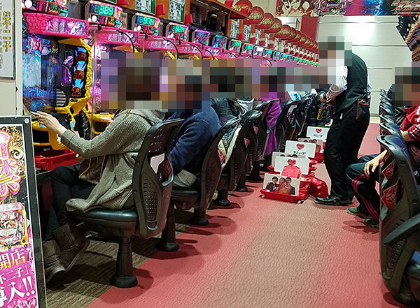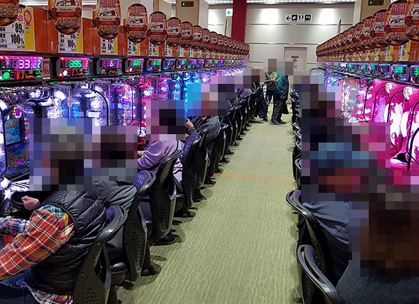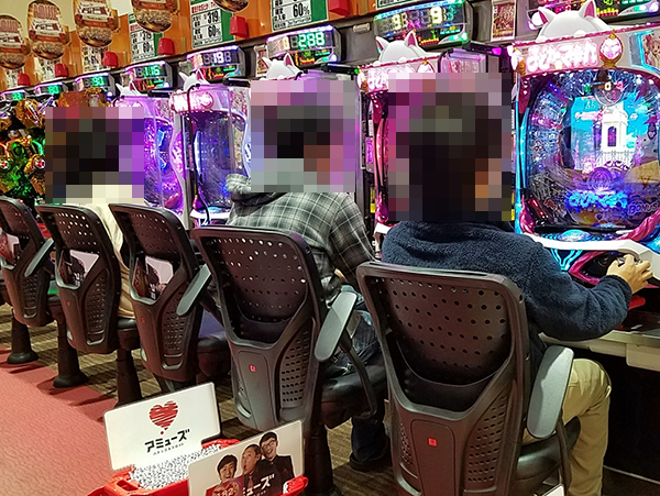 新台の「CR不二子〜Lupin The End〜」はつねに満席といった様子。出玉が伸び悩んでいる印象は受けたが、楽しそうな雰囲気となっていた。海物語シリーズなどの定番機種だけでなく、最新機種も大人気のようだ。