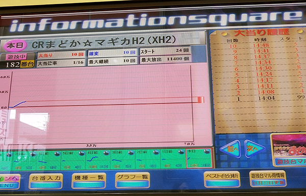 高稼働となっていた「CRぱちんこ魔法少女まどか☆マギカ」にも笑顔がみられた。順調に連チャンを継続させている姿がみられるなど、活気につながる光景も確認している。