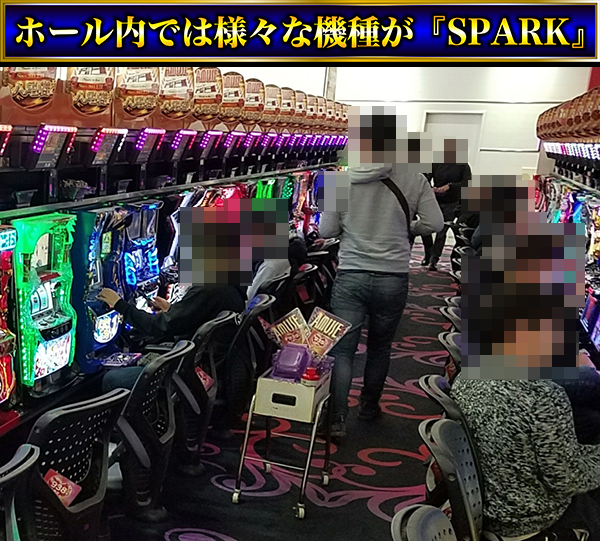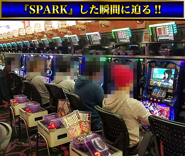 楽しそうに遊技をおこなうパチスロファンたちの笑顔をカメラに収めた「The Legends取材-SPARK」。