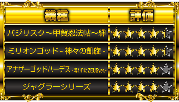 ミリオンゴッド-神々の凱旋-…一撃の出玉感は圧巻。星4.5個