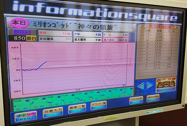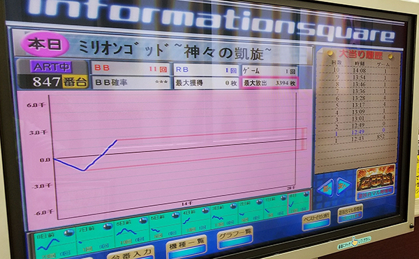 美しい右肩上がりのデータが描かれた「ミリオンゴッド-神々の凱旋-」!