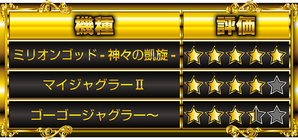 ミリオンゴッド-神々の凱旋-…圧巻の出玉。星5個