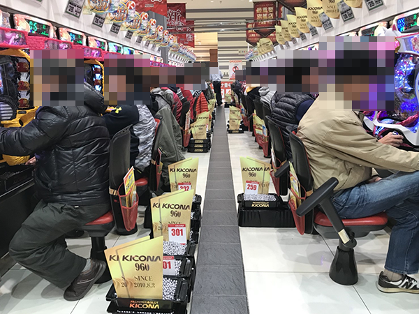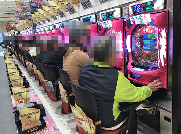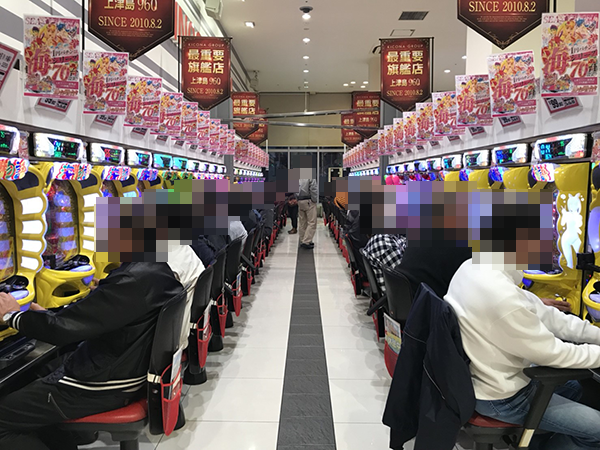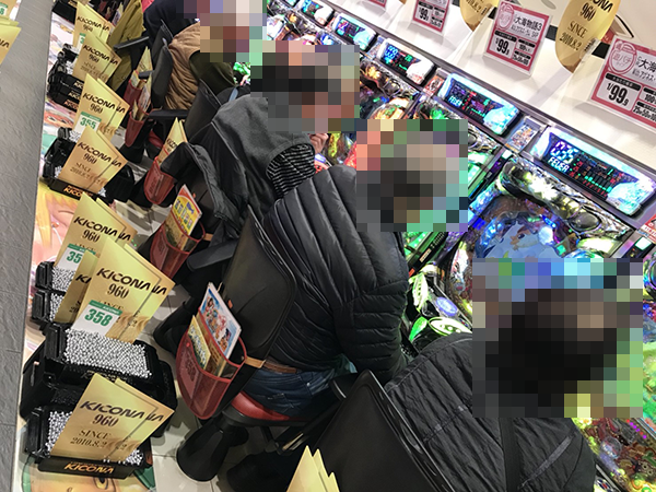 17時頃のパチンココーナーをうかがうと、稼働率は約8割。最新機種から定番機種までさまざまな機種が支持を受けており、伝説の光景に出会える期待が高まった。