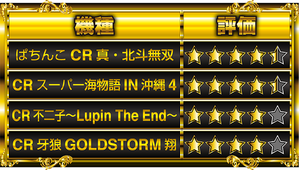 CR牙狼GOLDSTORM翔…高稼働も出玉に差。星4個