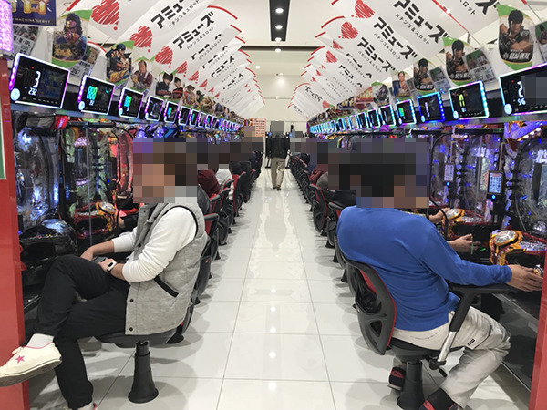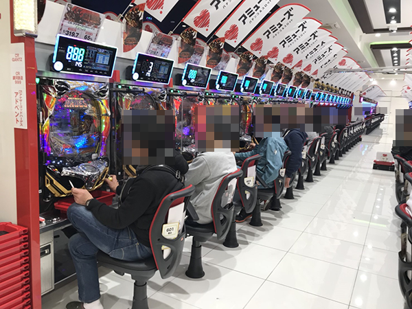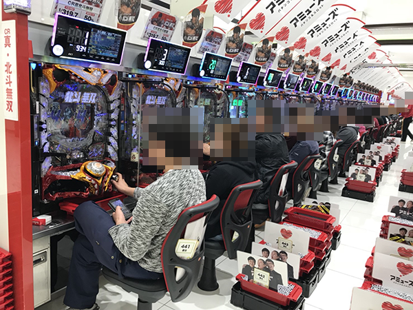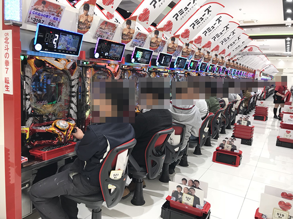 ほぼ満席となっている「ぱちんこCR真・北斗無双」に笑顔が咲き誇っていた。