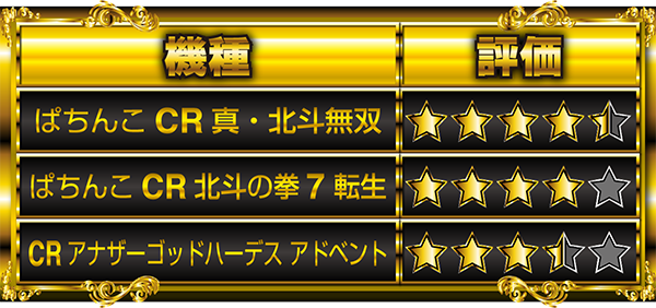 ぱちんこCR真・北斗無双…稼働率と出玉感がトップクラス。星4.5個