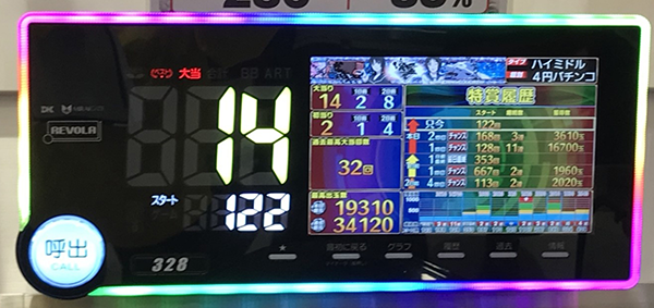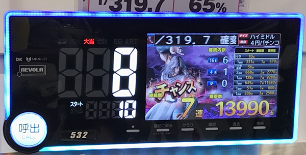 取材時は空き台が見当たらず、スタッフたちがテキパキとプレイヤーたちからの呼び出しランプに対応している姿が目立つ。数字上からも盛り上がりがうかがえ、多少のバラツキはあったが大当り回数が20回を超える台や2万発を超えるデータも確認している。