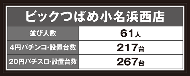 1月27日、福島県いわき市にある「ビックつばめ小名浜西店」へと向かった。今回の取材は、「THE MONSTER」だ。パチンコに笑顔アリ、パチスロに盛り上がりアリと、楽しさを感じられる空間が広がっていた。