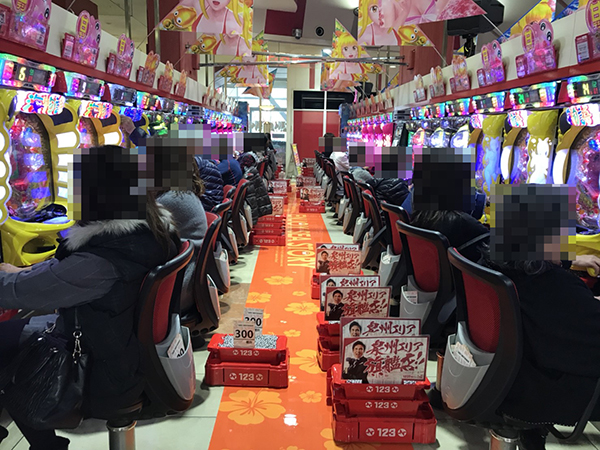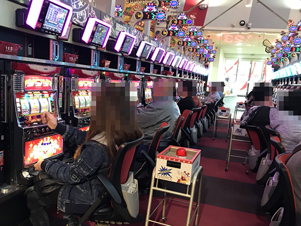 5円パチスロもにぎわいをみせており、うれしそうなプレイヤーが多く各シマが華やかなムードにつつまれていた。