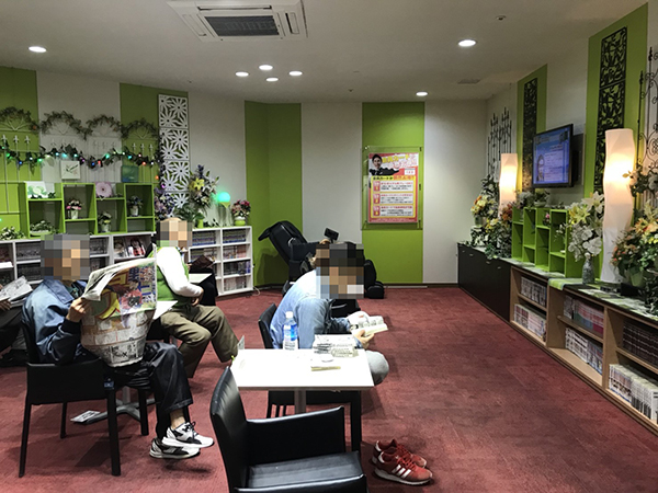 禁煙のレストコーナーを完備しており、大量の漫画本が用意された空間でゆったりくつろぐプレイヤーも多い。