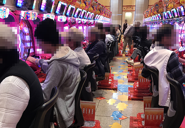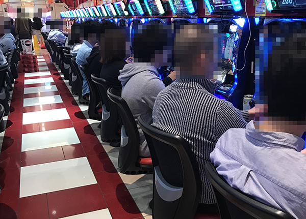 取材時、店内には既に多くのプレイヤーが集結。あふれんばかりの笑顔を浮かべながら遊技を楽しんでいた。