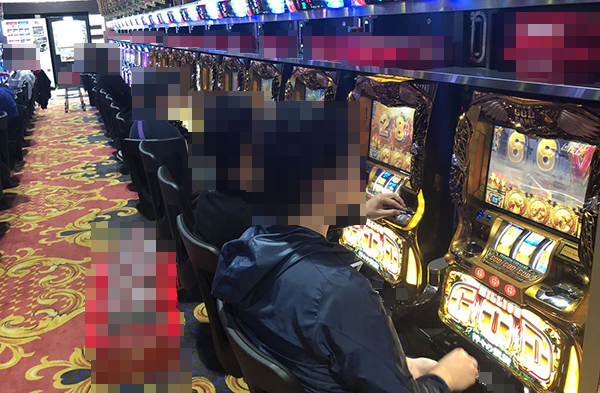 14時を過ぎた頃の4円パチンコをみると、プレイヤーたちが楽しそうに遊技をおこなっていた。