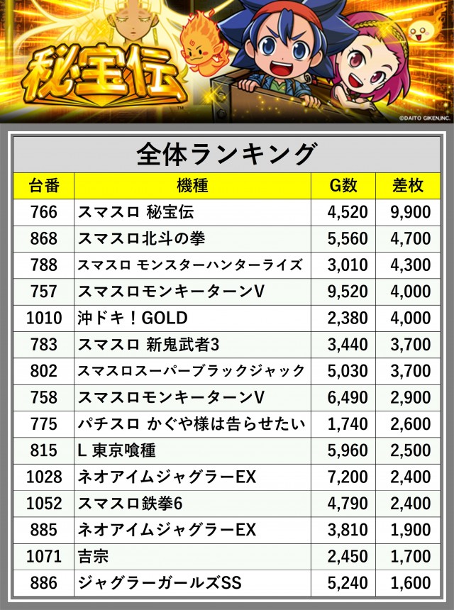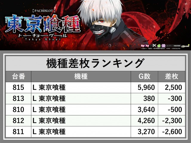 ※差枚数順に掲載しています
