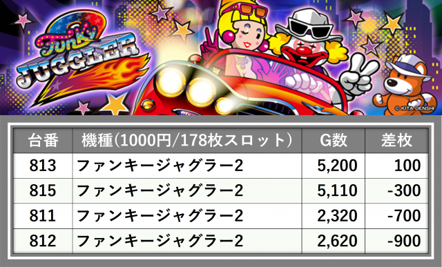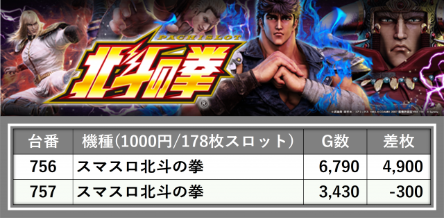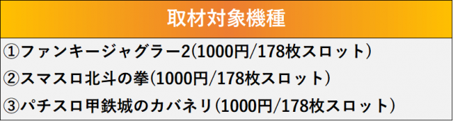 厳選された取材対象機種をはじめ、その他スロット全体から好記録が飛び出した!プレイヤーが楽しんだ1日を下記データにて振り返ってみて欲しい。