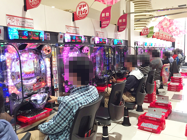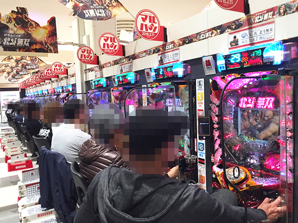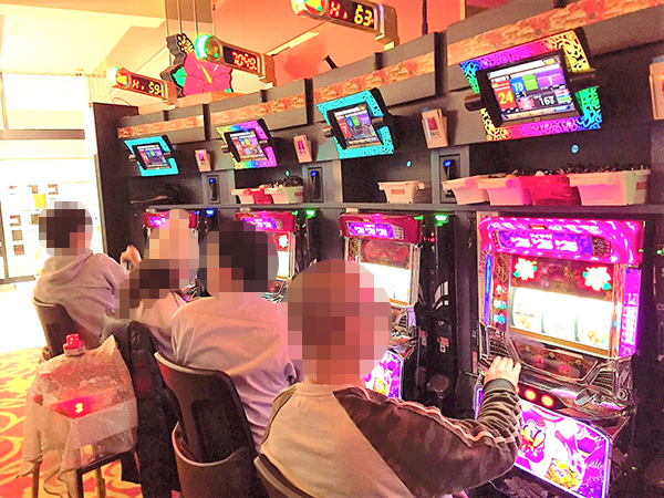 取材時、既に多くのプレイヤーが店内で遊技を楽しんでおり、パチンコ・パチスロ共ににぎわいをみせていた。