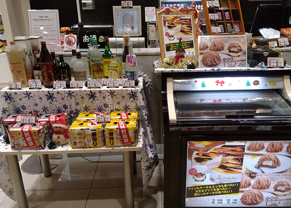 アルコール類や美味しそうなスイーツなどが並ぶ賞品コーナーも注目をしたポイントのひとつ。陳列棚の装飾がクリスマス仕様となっていたことも印象的で、季節を感じられる空間であった。