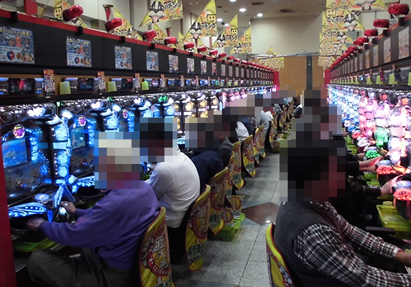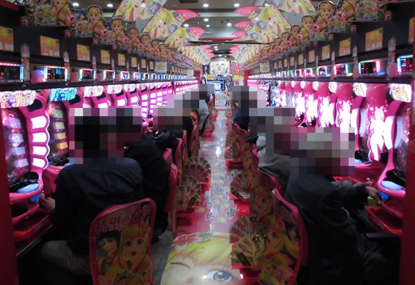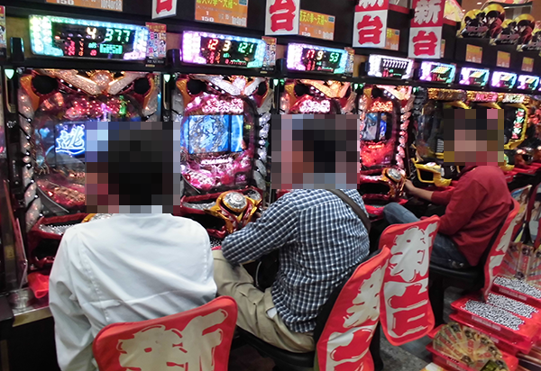 うれしそうなプレイヤーは、1円パチンコでも確認済み。海物語シリーズや「CRぱちんこ必殺仕事人Ⅴ」など、さまざまな機種が支持されていた。