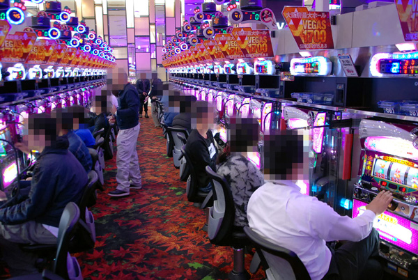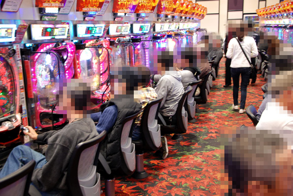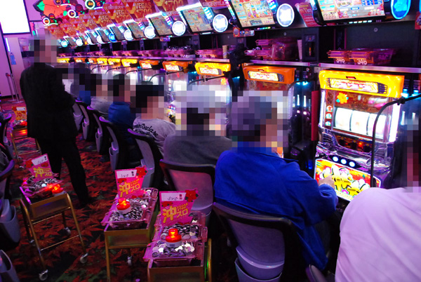1円パチンコ、5円スロットの低貸しコーナーも終始、高い稼動をキープ。楽しげで明るい雰囲気が印象的。