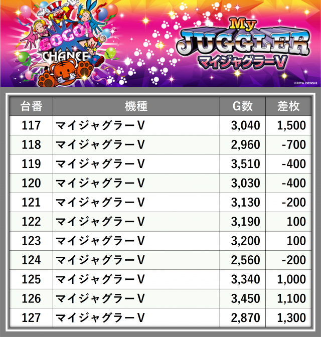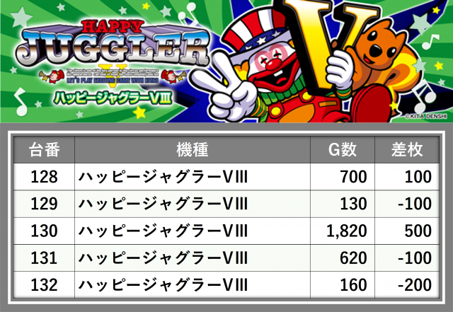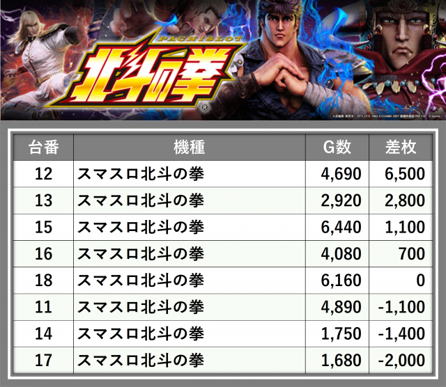 ※台番順に掲載しています