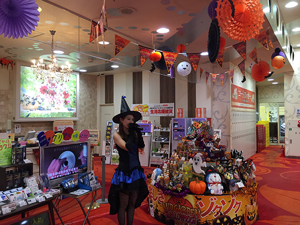 ホール内はハロウィンの装飾で、可愛らしく彩られてました★ 天井にまで飾り付けがあり、とっても華やかですね。