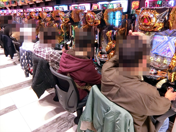 4円パチンコでは、「CR牙狼GOLDSTORM翔」と「ぱちんこCR真・北斗無双」の2機種に人気が集中。両機種共に空台が見当たらないほどに盛り上がり、なかには理想的な展開を掴み笑顔で遊技を満喫しているプレイヤーも確認できた。