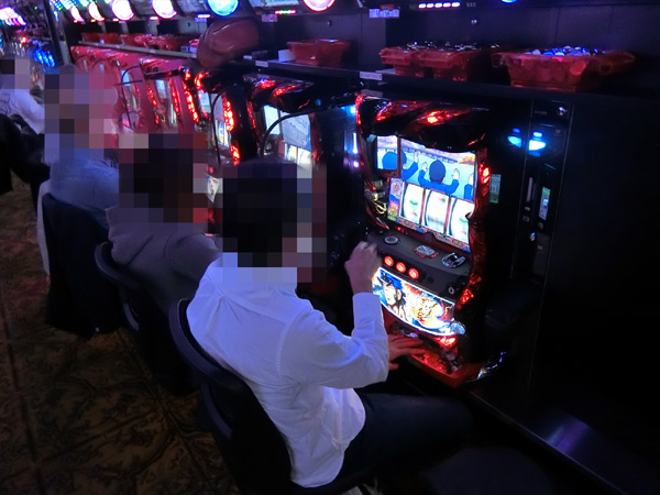 ボーナスタイプではジャグラーシリーズが好評。幅広い年代のプレイヤーがシンプルな告知演出を満喫していた。