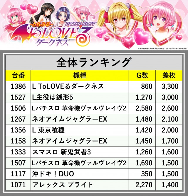 ※差枚数順に掲載しています