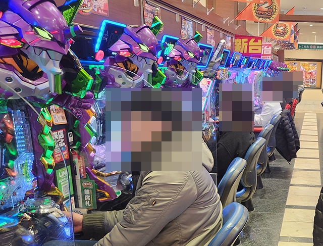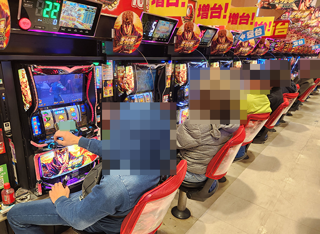 取材時は、「e 北斗の拳11 暴凶星」に空き台がなく、プレイヤーは晴れやかな表情で遊技中!
