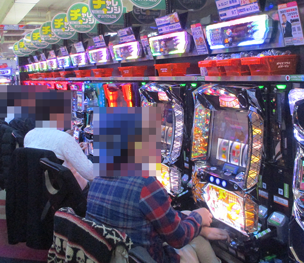 「ミリオンゴッド-神々の凱旋-」や「バジリスク~甲賀忍法帖~絆」もにぎわっており、明るい光景が広がっていた。
