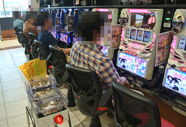 17時を過ぎた頃の20円パチスロでは、ジャグラーシリーズやハナハナシリーズといったボーナスタイプがとくに活気づいており、どちらも空き台のほうが少ないほどの盛況ぶり。大満足といった表情のプレイヤーが、嬉しそうに遊技を続けていたいたことも印象に残っている。
