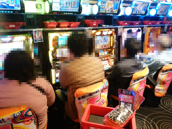 パチンコでは、「ぱちんこCR真・北斗無双」などが人気があり、これから始まる展開に胸をふくらませて遊技しているといった雰囲気がひしひしと伝わってきた。