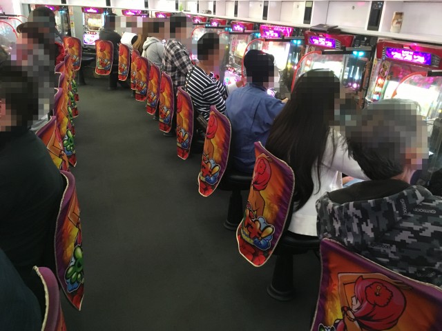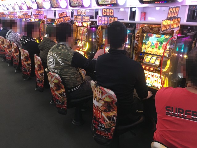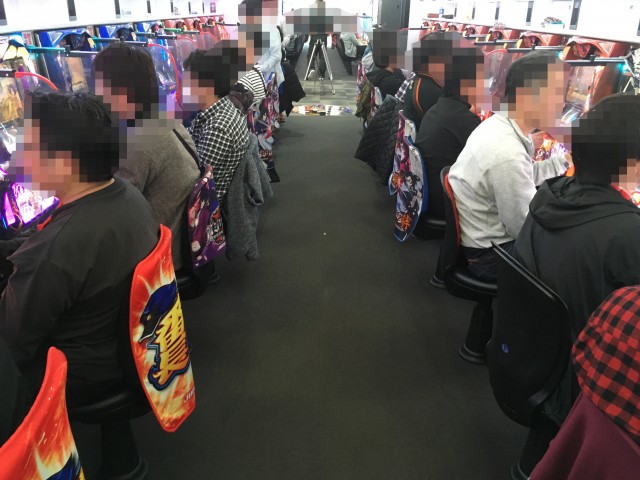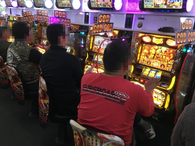 先頭ユーザー達が座り、しっかり判別を行なっている。早い段階で多くの台がBTに突入しているところから朝イチ狙うには◎