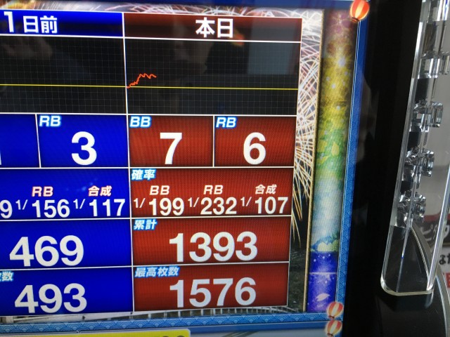 データを参考にハナビの高設定を見つけ出したことは及第点では無いでしょうか?しっかり勝ちましたしね♪