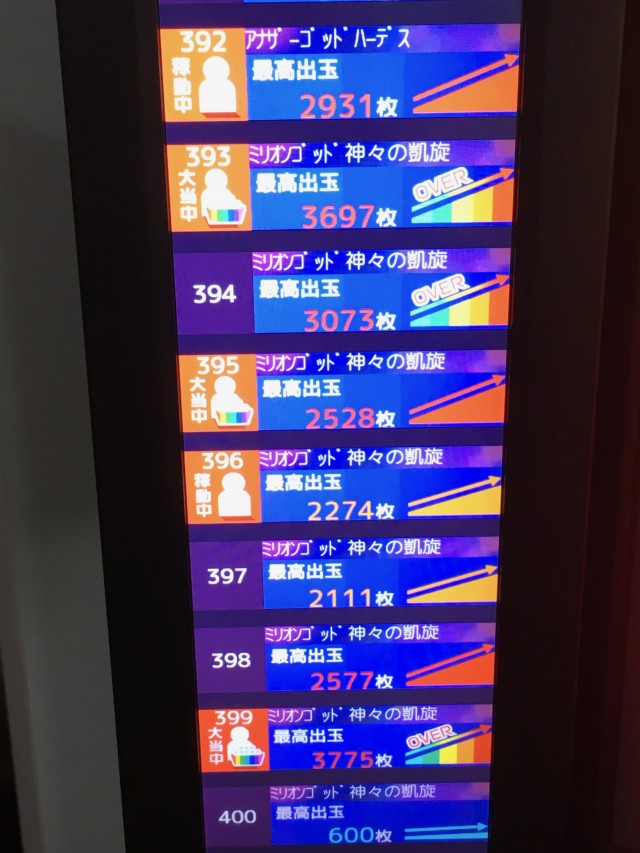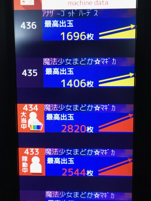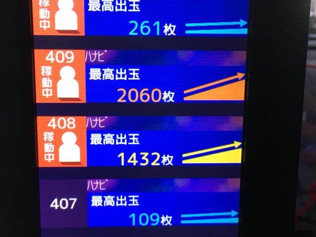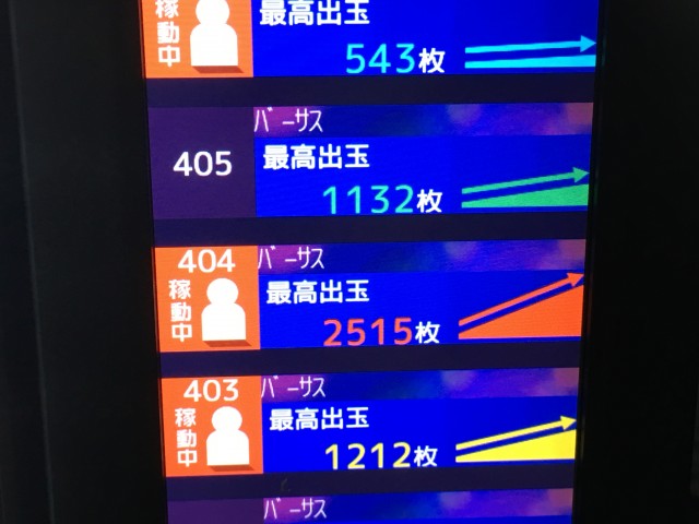 ハナビやバーサスは上げ狙いが功を奏する台多し。イマイチもあった。二日続けて出ている台はデータ上少なく狙いやすい。こちらは◯