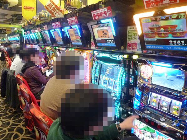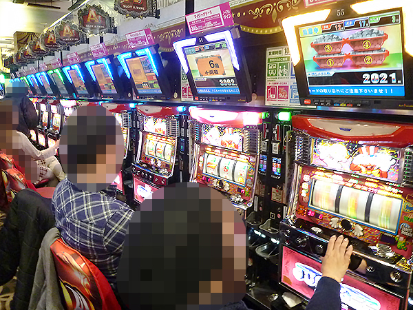 同店はパチスロ専門店。取材時には既に多くのプレイヤーが集結しており、機種を問わずにぎやかな雰囲気が感じられた。