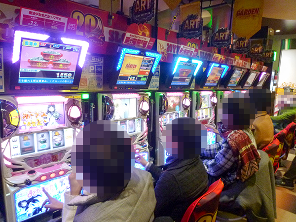 「SLOT魔法少女まどか☆マギカ」や「パチスロ北斗の拳 転生の章」、さらに「押忍!番長3」も好評。ほぼ満席となるほどの高稼働で、シマ内は明るい雰囲気に包まれていた。