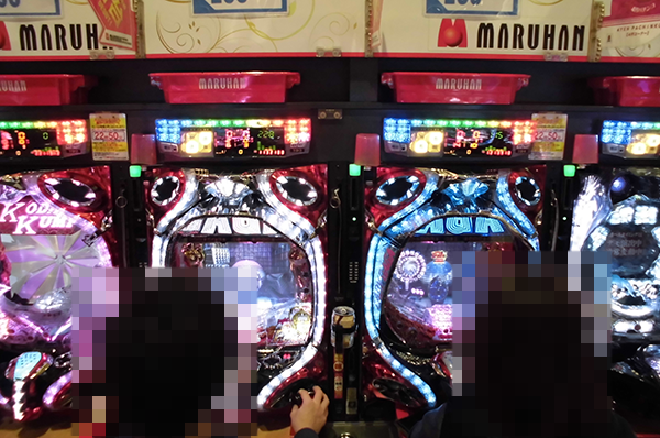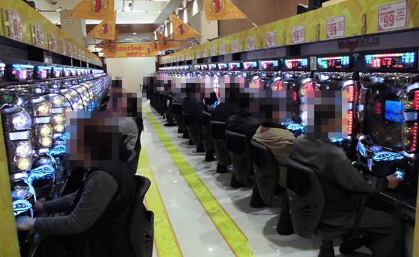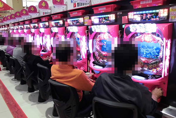 4円パチンコでは、新台の「CR フィーバー LADY GAGA」や「CR無双OROCHI」が人気。うれしそうにハンドルを握っている姿からは、有意義な時間を過ごせていることが伝わってきた。
