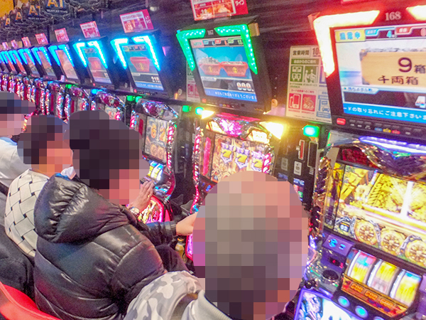 1000円/186枚パチスロも高稼働で、まさに盛況といった様子。プレイヤーたちの嬉しそうな表情から、機種を問わず遊技を楽しめることが伝わってきた。