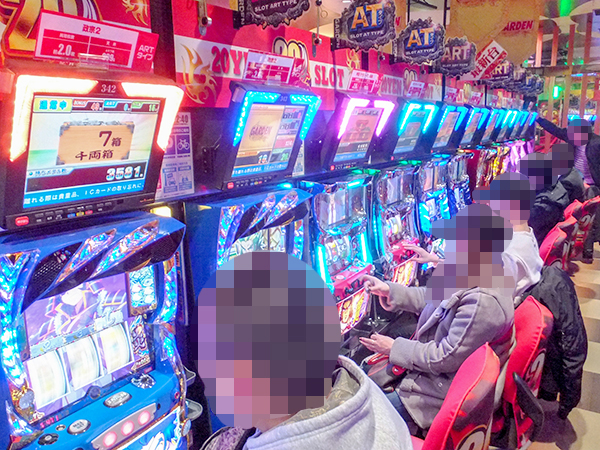 取材時、店内には既に多くのプレイヤーが集結。各人、あふれんばかりの笑顔を浮かべながら遊技を楽しんでいた。