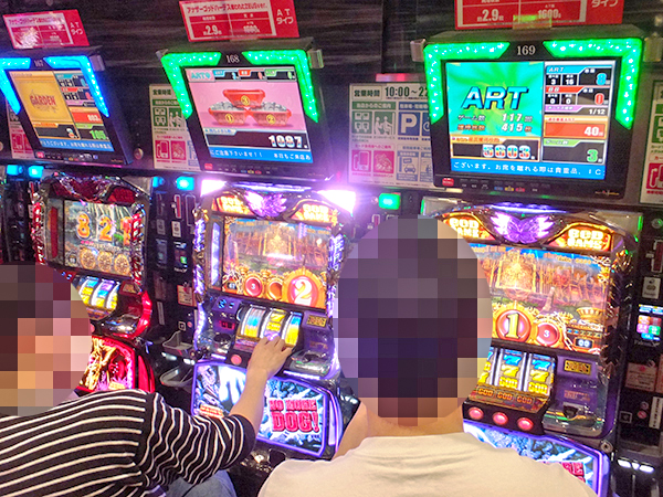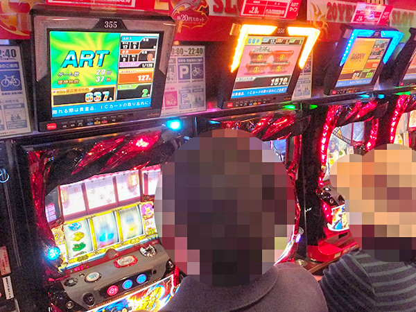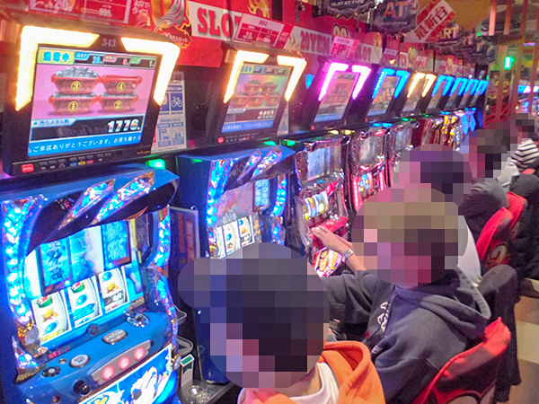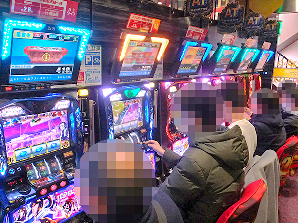 店内を見ると既に多くのスロッターが遊技を楽しむ様子が見られ、シマの至る所が明るい雰囲気に包まれていた。