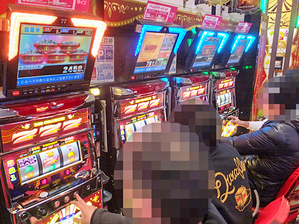 「パチスロ マクロスフロンティア3」や「SLOTバジリスク~甲賀忍法帖~Ⅲ」、ジャグラーシリーズも微笑ましいムード。至る所で活気あるシーンを目にしている。