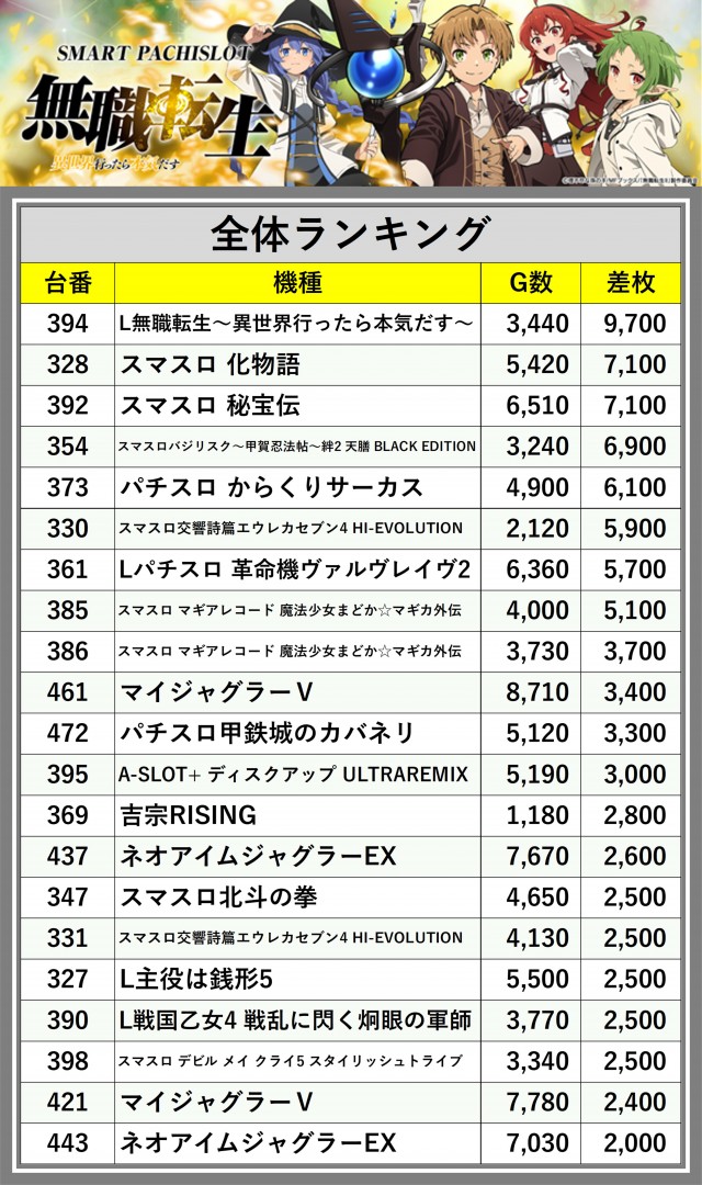 厳選された取材対象機種をはじめ、その他スロット全体から好記録が飛び出した!プレイヤーが楽しんだ1日を下記データにて振り返ってみて欲しい。