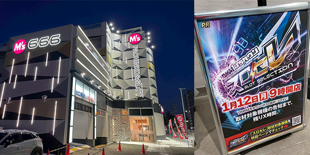 1月12日(月)M’s666菊水店にて、DMMぱちタウンの新感覚取材「スロセレ」を実施。