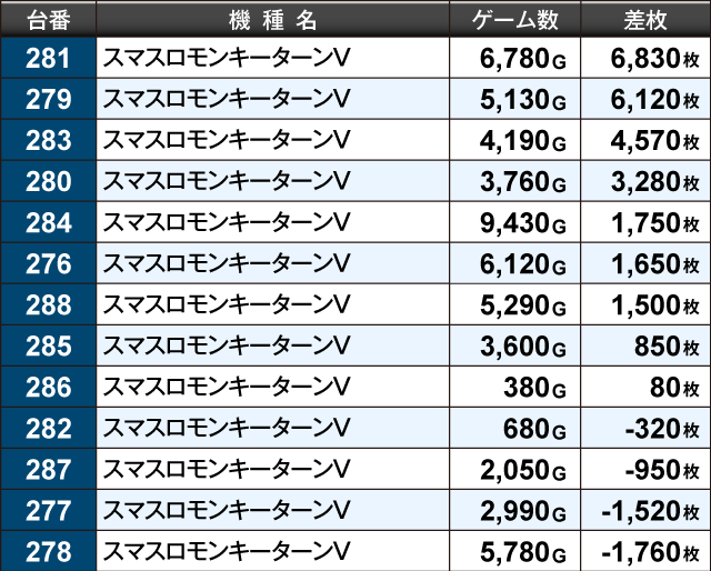 機種別差枚ランキング