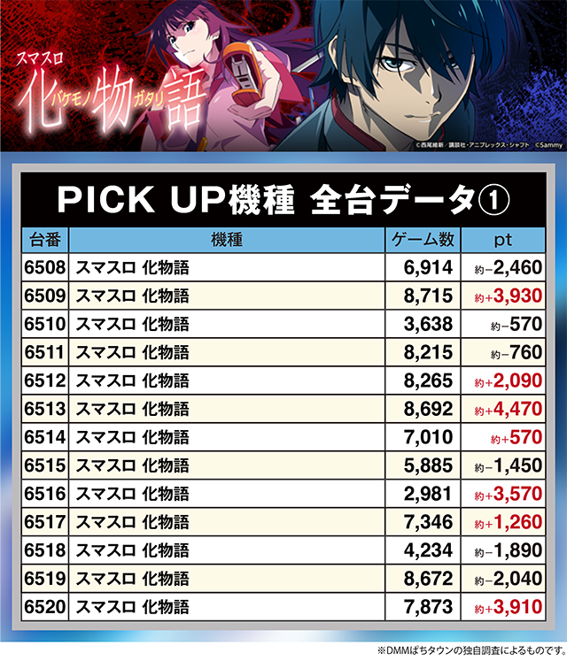 「スマスロ 化物語」の6台が約+1,200ptオーバー。